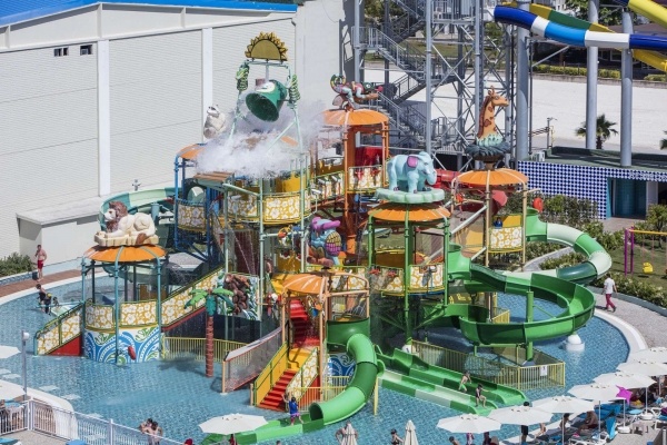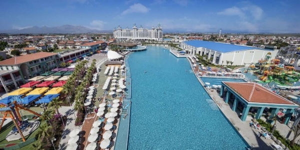 - 10.000. nm-es medence napernyőkkel és napozóágyakkal, 3.147 nm-es medence csak felnőtteknek, ,,Maldív" medence bérelhető ,,Maldív" bungalókkal 3.000 nm-en, félolimpiai medence, hullámmedence, külön medence a családi ,,tóparti házakhoz", illetve a villákhoz, ,,lusta" folyó", aquapark 9 felnőtt és 6 gyermekcsúszdával, 2 belső medence (egyikük tengervizes), belső gyermekmedence, főétterem, 3 snack étterem, 4 a'la carte étterem, 17 bár, nappali és esti animációs programok, profi show-műsorok az amfiteátrumban, alkalmanként tematikus partik és élő zene, karaoke, zongoraelőadás, törökfürdő, szauna, gőzfürdő, só szoba, fitneszterem, teniszpálya felszereléssel, minifutball, asztalitenisz, darts, kosárlabda, strandröplabda, WIFI a szobákban, a szálloda közösségi helységeiben és a parton, shuttle járat a partra.