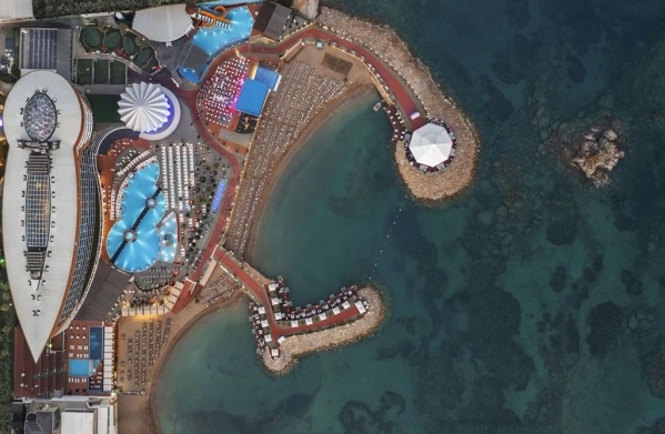 SZOLGÁLTATÁSOK: medence napernyőkkel és napágyakkal o fedett medence o csúszdák o főétterem o bárok (lobby, medence, strand, diszkó stb.) o cukrászda o animációs programok o esti show-műsor o élőzene o amfiteátrum o fitneszterem o mini könyvtár o mozi o strandröplabda o asztalitenisz o törökfürdő o szauna o gőzfürdő o wifi o térítés ellenében: SPA központ o masszázs o törökfürdő-kezelések o kozmetikai kezelések o fodrászat o üzletek o mosoda o orvosi szolgálat o játékterem o biliárd o bowling o autókölcsönzés o vízi sportok a strandon o konferenciaterem