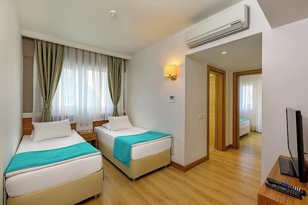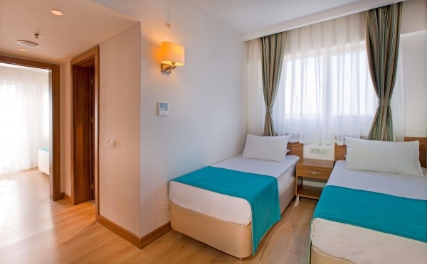 - Családi-suitek - 2 külön hálószoba és egy külön nappali, 1 franciaágy, 2 egyszemélyes ágy, 1 kanapé, balkon