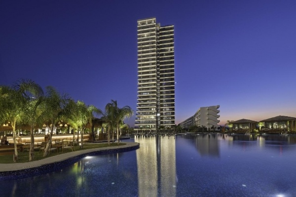 Fekvése: a 2023-ban megnyitott, ikonikus épületegyüttes több különálló toronyból és egy hatalmas, trópusi hangulatú medencekomplexumból áll, amelyet Észak-Ciprus ,,legnagyobb medencéjeként" tartanak számon. A szálloda grandiózus méreteivel, modern dizájnjával és kiváló szolgáltatásaival a régió egyik új luxusreferenciájává vált. A szálloda kb 500 méterre található a széles, homokos tengerparttól, ahol a hotel a vendégek számára privát partszakasszal, napernyőkkel és napágyakkal biztosít kényelmes pihenést. A partszakaszra folyamatos ingyenes shuttlejárat közlekedik (privát szervizúton). A Grand Sapphire Resort négy fő toronyépületben és több kisebb szárnyban(resort) kínál szobákat, összesen több mint 1200 luxuskategóriás lakóegységgel. A környék az elmúlt években az egyik legdinamikusabban fejlődő üdülőterületté vált Észak-Cipruson - új éttermekkel, bárokkal, üzletekkel és promenáddal. Famagusta központja kb. 15-18 km, míg a Larnaca nemzetközi repülőtér kb. 65-70 km távolságra helyezkedik el. A transzferidő a határátkeléstől függően kb. 90 perc. A szálloda tökéletes választás azok számára, akik egy ultramodern, új építésű luxusresortban szeretnének pihenni, kiváló létesítményekkel, hatalmas medenceparkkal, széles gasztronómiai kínálattal, saját kaszinóval és családbarát szolgáltatásokkal. Stílusa a mediterrán-török vendéglátást ötvözi a modern városi hotelérzéssel - így családok, párok és premium utazók egyaránt megtalálják számításaikat.