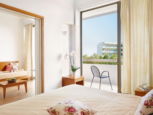 - Premier-családi szobák - tengerre nézők, főépület vagy melléképület, 2 különálló szoba tolóajtóval elválasztva, 1 tágas fürdőszoba, 2 balkon