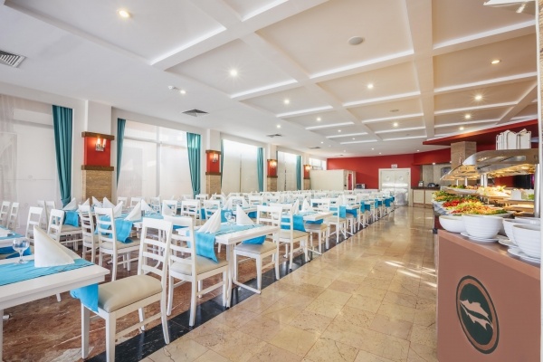 - All Inclusive: minden étkezés büférendszerben, reggelinél kávé, tea és palackozott üdítők, ebédnél és vacsoránál üdítők, sör, bor és egyes alkoholos italok, éjféli snack-ételek 23:00 és 24:00 óra között, napközben snack-ételek a snack-bárban 12:00 és 16:00 óra között, valamint 12:00 és 14:30 óra között a strandbárban, fagylalt 15:00 és 16:00 óra között, kávé és kekszek 17:00 és 18:00 óra között, helyi alkoholos és alkoholmentes italok a pool-bárban 10:00 és 24:00 óra között, a lobby-bárban 10:00 és 22:00 óra között, a strandbárban 10:00 és 17:00 óra között. Az All Inclusive szállodák szolgáltatásai bizonyos részletekben szállodánként eltérhetnek.
