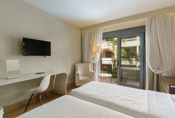 Kiváló elhelyezkedésű hotel, Rethymno nyüzsgő tengerparti sétányán, az első szállodasoron. A homokos/néhol kavicsos tengerparttól csupán egy helyi keskeny autóút választja el. Rethymno nevezetessége, a gyönyörű velencei óváros akár gyalogosan is könnyen elérhető (2 km) a part mentén elnyúló, lüktető, üzletekkel, hotelekkel, cukrászdákkal, éttermekkel szegélyezett sétányon. A hotel a kék zászlóval kitüntetett rethymnoi tengerparton saját szakasszal is rendelkezik, ahol a hotel vendégei ingyenesen vehetik igénybe a napernyőket és nyugágyakat a szabad helyek függvényében ( a partszakasz nem elkerített, így nemcsak a hotel vendégei tartózkodhatnak itt).