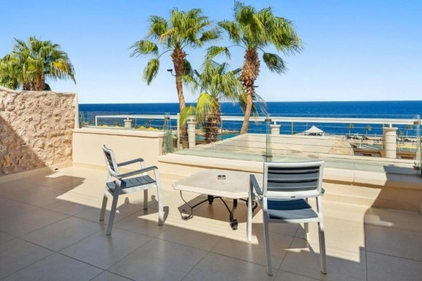 SZOBÁK: ASTANDARD szobák tengerre néző kilátással (DZM) kb. 57 m2 területüek, tussolóval vagy káddal, WC-vel, hajszárítóval, minibár, széf. ADELUXE ( DXM 70 m2 területüek) szobák tágas méretévelés lenyűgöző tengerre néző kilátásával ez a szoba garantáltan emlékezetes tartózkodást biztosít.CSALÁDI szobák max 2 felnőttés 2 gyereknekfoglalható.Családi szoba tengerre néző kilátással ( FZM 60 m²): Tágas, családok számára tervezett menedék, amely a kényelmetés a funkcionalitástötvözi, panorámás kilátással a tengerre, külön hálórésszelésátgondolt kényelemmel a megbecsült emlékek megőrzéséhez. FoglalhatóExecutive Swim Up Room– Tengerre néző medencekapcsolatos szoba is (DUS) 57 m2területüek. elegáns szoba saját terasszalés medencekapcsolattal, modern dizájnnal, exkluzív felszereltséggel.