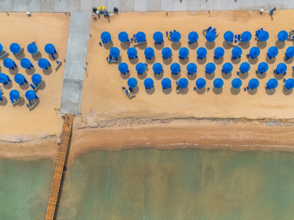 • Napozóágyak bőséges kínálataés tengerparti vizesblokkok.