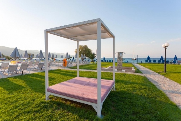 Alykanas település központjától mindössze kb. 200 m-re, közvetlenül a homokos tengerparton (kb. 20 m) épült, 15 épületből álló (lift csak a főépületben), 3 szintes 216 szobás szállodakomplexum. A legközelebbi szupermarket kb. 50 m-re található, a közeli buszmegálló pedig egy kényelmes sétával (kb. 10 perc) elérhető. A település központjában tavernák, bárok, kávézók, üzletek, vendéglők találhatók. Szobáink az épület úgynevezett medencére néző Classic szárnyában és a melléképületben helyezkednek el. A komplexum családoknak is ideális választás.