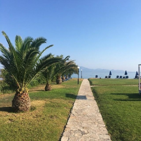 Alykanas település központjától mindössze kb. 200 m-re, közvetlenül a homokos tengerparton (kb. 20 m) épült, 15 épületből álló (lift csak a főépületben), 3 szintes 216 szobás szállodakomplexum. A legközelebbi szupermarket kb. 50 m-re található, a közeli buszmegálló pedig egy kényelmes sétával (kb. 10 perc) elérhető. A település központjában tavernák, bárok, kávézók, üzletek, vendéglők találhatók. Szobáink az épület úgynevezett medencére néző Classic szárnyában és a melléképületben helyezkednek el. A komplexum családoknak is ideális választás.