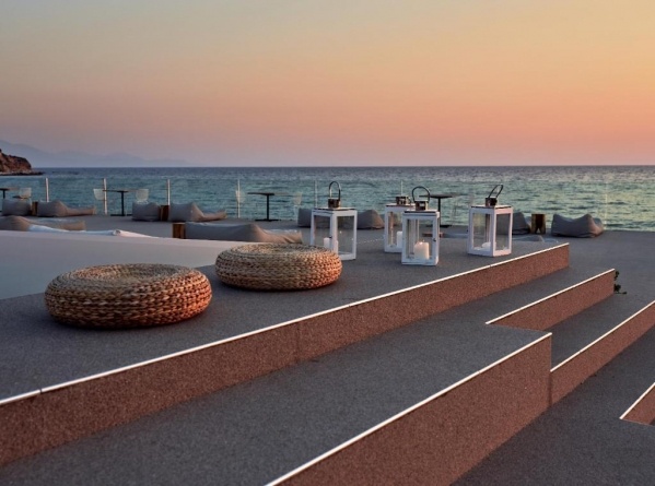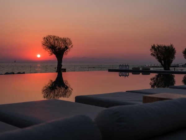 Közvetlenül a aprókavicsos/köves/homokos tengerparton épült, a központtól kb. 500 m-re elhelyezkedő, nagy gondozott kerttel, egzotikus növényekkel körülvett, háromszintes, lifttel rendelkező főépületből és melléképületekből álló, 165 szobás modern szálloda komplexum. A szálloda kizárólag 16 év feletti vendégeket fogad.
