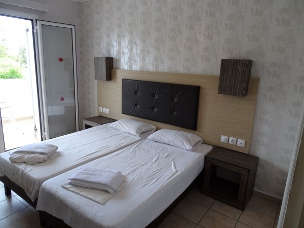 A homokos tengerparttól kb 450 m-re épült, felújított, háromszintes, két épületrészből álló, 60 szobás szállodaegyüttes. A közelben (kb. 200 m) tavernák, kávézók, üzletek, vendéglők találhatók. A közkedvelt szálloda 2019-ben hivatalosan is megkapta a 4. csillagot.
