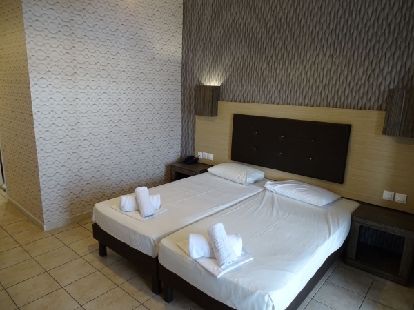 - Félszuterén kétágyas standard pótágyazható szoba: a szálloda kertfelőli részén, a recepcióhoz közel, a kert szintjétől 9 lépcsőfokkal lejjebb helyezkedik el, amelyhez búrorozott terasz tartozik.A kisebb alapterületű, de kényelmes kétágyas, pótágyazható szobához egy nagyobb méretű terasz ajtó és egy kisebb ablak is tartozik, valamint SAT tévével, fürdőszobával, szúnyoghálóval és légkondícionálóval felszerelt. A fürdőszobához ablak nem tartozik.