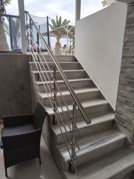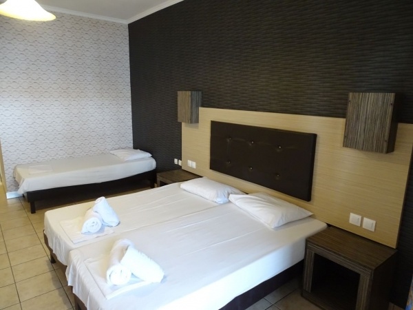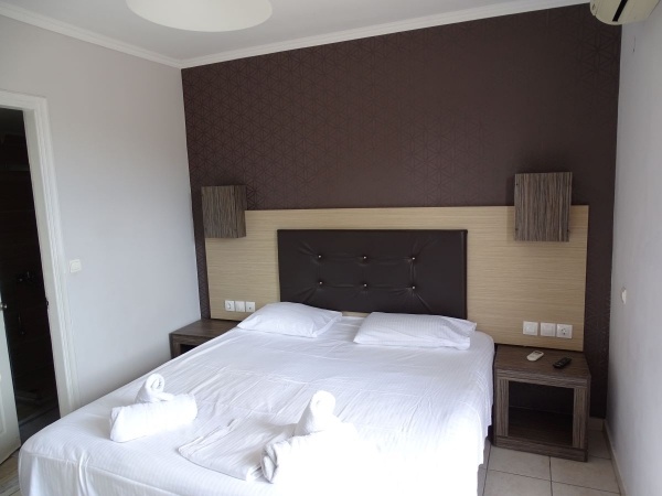 A homokos tengerparttól kb 450 m-re épült, felújított, háromszintes, két épületrészből álló, 60 szobás szállodaegyüttes. A közelben (kb. 200 m) tavernák, kávézók, üzletek, vendéglők találhatók. A közkedvelt szálloda 2019-ben hivatalosan is megkapta a 4. csillagot.