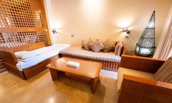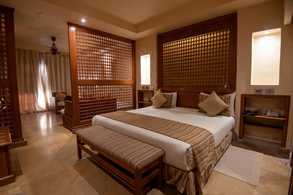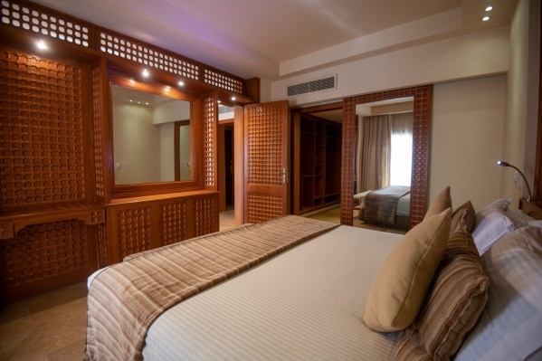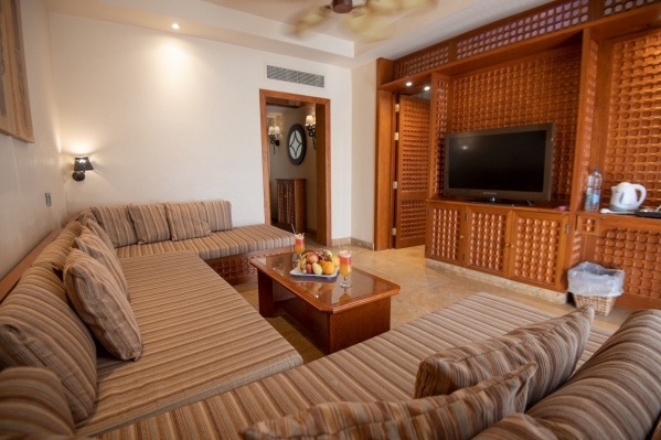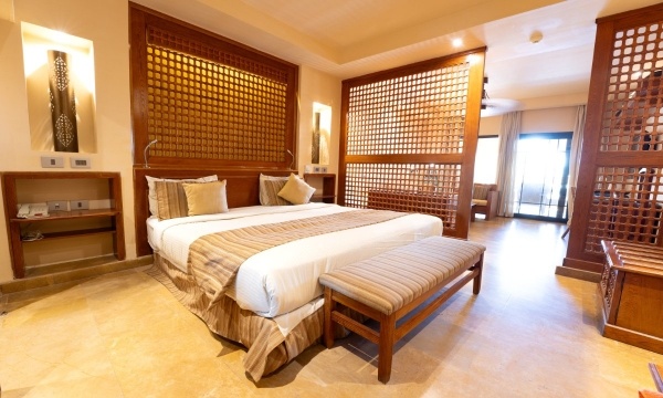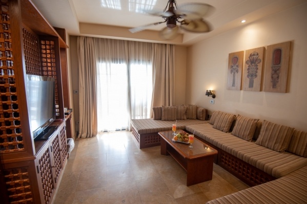 SZOBÁK: azízlésesen berendezettJUNIOR SUITEszobák (kb. 52 m²) egy hálószobávalés egy nagyülősarokkal, fürdőkáddal/zuhannyal, WC-vel, hajszárítóval, mini hűtővel, műholdas LCD síkképernyős TV-vel, telefonnal, légkondicionálóval (szezonális), széffelés erkéllyel rendelkeznek. AGRAND SUITE(kb. 52 m²) típusú szobák hálóbólés nappalibólállnak, többségükben tolóajtóval elválasztva (egyes típusokban rendes ajtóval, vagy esetlegesen ajtó nélkül). ACSALÁDI SUITE(kb. 62 m²) szobákban a nappaliés a háló ajtóval van elválasztva. AHAPPY BABY SUITEkisgyermekes pároknak ajánlott, számos gyerekbarát megoldáson kívül (rácsoságy, babakocsi, etetőszék, bili, játszószőnyeg) saját, bekerített kerttel is rendelkezik. Akár max. 6 fő részére is foglalható családi szobák a szomszédos Family Star Makadi ****+ hotelben kerültek kialakításra.