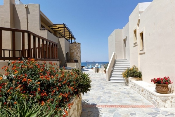 Kiváló elhelyezkedésű hotel közvetlenül Platanias arany homokos/köves tengerpartján. Platanias központi, nyüzsgő része kb. 450 méterre található. A hotel több épületből áll, a szobák elszórtan helyezkednek el az épületekben.