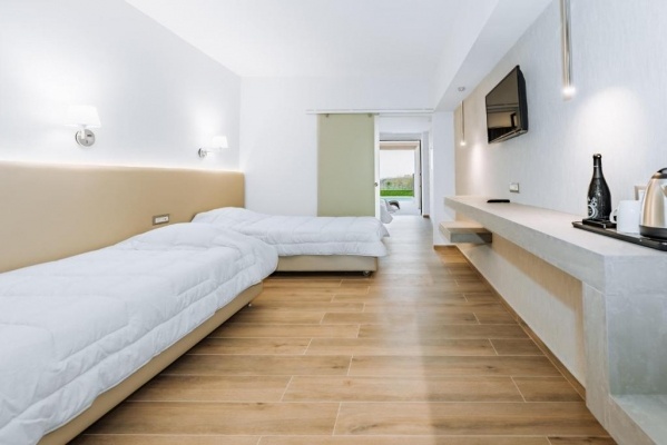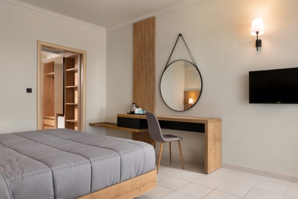 Kalithea településen, 60.000 nm alapterületen elterülő, modern stílusban épült 285 szobás 4 csillagos, több két-háromszintes épületből álló, domboldalra épült szálloda komplexum, fantasztikus kilátással a kalitheai öbölre. Tengerpartig húzódó, hatalmas gondozott kertje pálmafákkal, virágokkal, mediterrán növényekkel van beültetve. Saját kiépített sziklás öbölben elhelyezkedő kis kavicsos/homokos tengerparttal rendelkezik, amelyhez a kerten keresztül, lépcsősoron lehet lejutni, távolsága kb. 300 m.