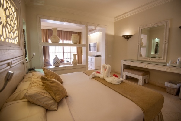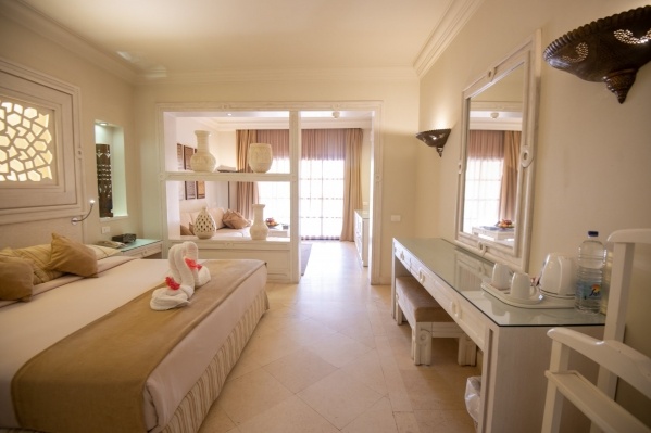 SZOBÁK: a tágasJUNIOR SUITEszobák (kb. 46 m²) fürdőkáddal/zuhannyal, WC-vel, légkondícionálóval (szezonális), műholdas LCD síkképernyős TV-vel, telefonnal, széffel, minibárral (üdítők ingyenesen), hajszárítóval, valamint kávé-és teabekészítéssel rendelkeznek. Ehhez a szobatípushoz kényelmesülőgarnitúrával berendezett terasz tartozik, rálátással oldalról a tengerre, a medencékre vagy a kertre. AJACUZZI SUITE (kb. 47-54 m²) szobák privát jacuzzival rendelkeznek és kiegészülnek egy nappalival, nagyrészük a legfelső emeleten található. APOOL SUITE(kb. 50-90 m²) szobák hasonló berendezéssel rendelkeznek, ezen kívül egy privát medencés terasz is tartozik hozzájuk. AGRAND SUITEszobák kb. 70-90 m²-en kínálják az igazi luxust, balkonjuk tengerre vagy medencére néz. AROYAL SUITE (kb. 70 m²) szobák hasonló berendezéssel rendelkeznek, privát jacuzziés két balkon tartozik hozzájuk, amik tengerre néznek. Minden szobában franciaágy található, mely nem alakítható két különállóággyá,és nem pótágyazhatóak.