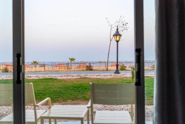 Ingyenes napozóágyak, párnákés napernyőkállnak rendelkezésre a medencéknélés a strandon. A strand csak lépcsőn közelíthető meg, de transzferszolgáltatás is rendelkezésreáll (felhívjuk figyelmét, hogy a transzfer emelt dzsippel történik, a bejárat hátul van). A strandtörölközőket elegáns strandtáskákban biztosítjuk, melyet a vendégekérkezéskor a szobájukban találhatnak meg.