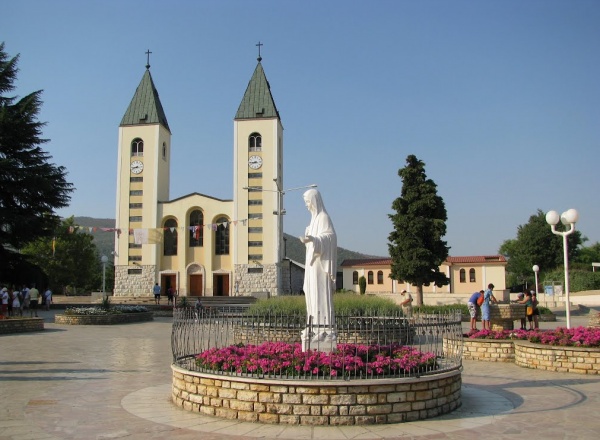 Szent Jakab plébániatemplom: A zarándokok találkozóhelye. A település az 1980-as évek elején vált népszerűvé. Gyerekek beszámolója szerint 1981. június 24-én a Crnica hegyén jelent meg előttük először Szűz Mária, hogy a békéről, a hitről és az imáról közvetítsen üzenetet. Azóta minden hónap 25. napján egy-egy új üzenetet kap innen a világ. Katolikus zarándokok milliói látogatnak ezért az egyébként mindössze 4500 - többségében horvát - lakosú Međugorjéba. A város fő templomában, a Szent Jákob templomban rendszeres imaórákat és lelki programot tartanak.A templom különlegessége a 7 méter magas, bronzból készült Feltámadt Krisztus-szobor, amelyet a szlovén művész, Andrej Ajdiae készített. A szobornak csodatevő erőt tanusítanak, mert állítólag könnyeket hullajtott.