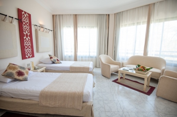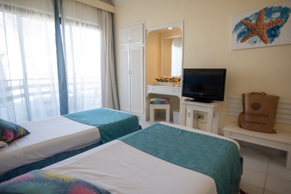 SZOBÁK: a STANDARD szobák (kb. 19 m²) fürdőszobával, WC-vel, légkondicionálóval (szezonális), telefonnal, széffel, műholdas TV-vel, mini hűtőszekrénnyel, hajszárítóval, balkonnal vagy terasszal rendelkeznek,és kertre nézőek. A SUPERIOR szobák (kb. 31 m²) felszereltsége ugyanaz, mint a standard szobáké, de tágasabbak, komfortosabbakés egy részük tengerre néző. ASUPERIOR DELUXEszobák (kb. 40 m²) hasonló felszereltséggel rendelkeznek, kertre vagy tengerre néznek. ACSALÁDIszobák (kb. 42 m²) kiegészülnek egy további hálószobávalés medencére vagy kertre nézőek. A nappaliés a hálórész ajtóval elválasztott.
