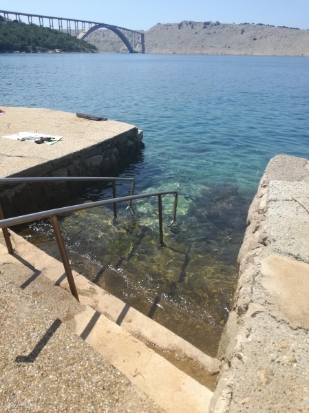 Tengerpart: kiépített betonos tengerpart, sok lépcsőn közelíthető meg.