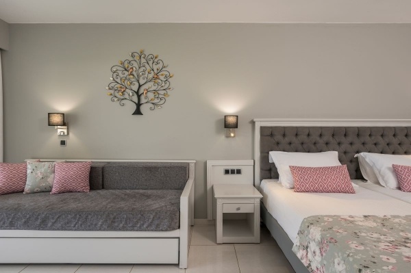 - Egyszerűen berendezett, kétágyas, pótágyazható, kertre néző szobákban, melyek hajszárítóval, telefonnal, egyénileg szabályozható légkondicionálóval, wifivel (térítés ellenében), műholdas LCD tévével, minihűtővel és erkéllyel rendelkeznek. Babaágy felár ellenében kérhető.