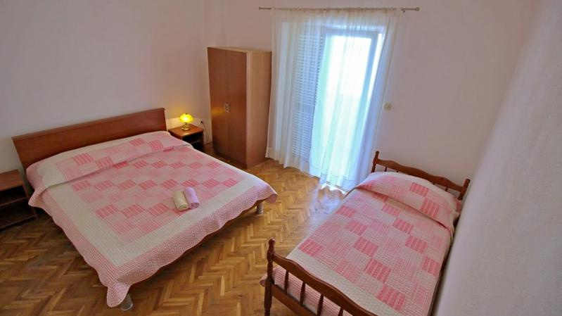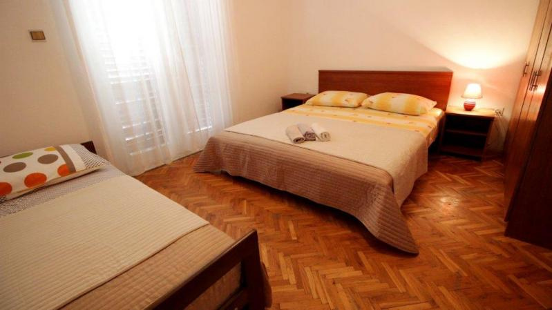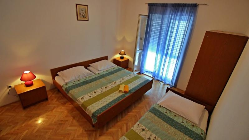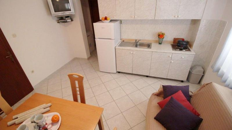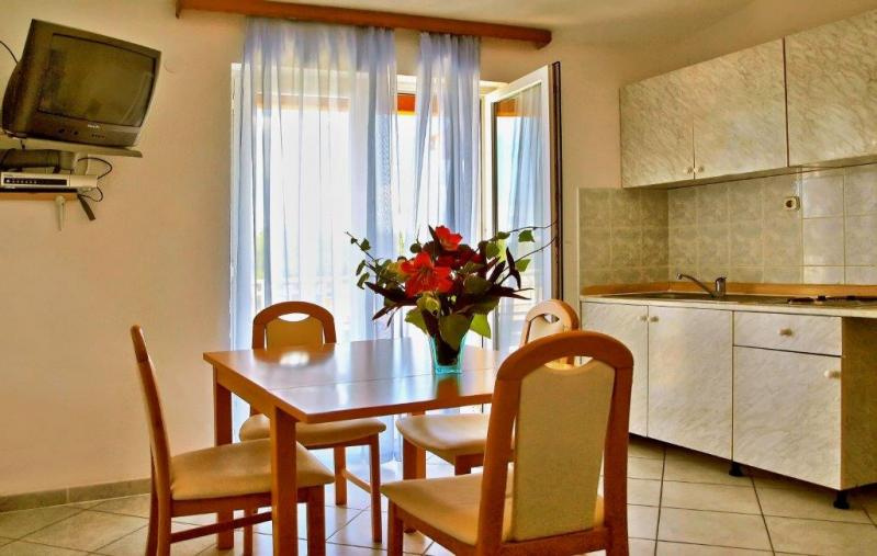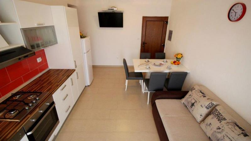 AM3-5 ágyas emeleti 38 nm /1 db 2.emeleti (háromágyas hálószoba, nappali duplaággyal és konyhasarokkal, klima, TV, fürdőszoba, tenger felőli erkély).