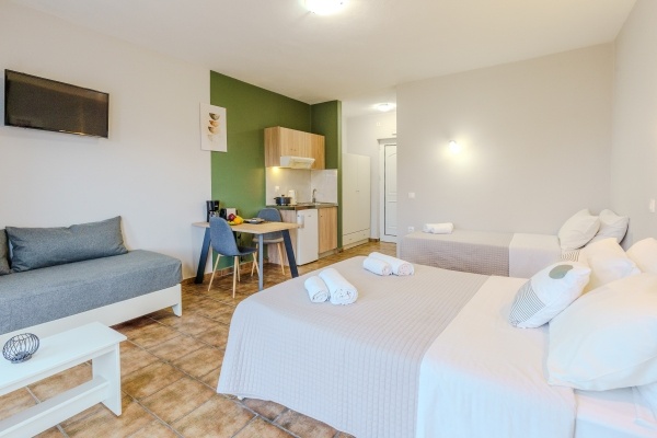 A több épületből álló, kis családi szálloda Agia Marina központjában található, kb. 10 km-re Chania központjától. A homokos strand kb. 150 m-re található, a közelben pedig számos étterem, bár, kávézó és üzlet áll rendelkezésre. Minden korosztály számára ajánljuk.