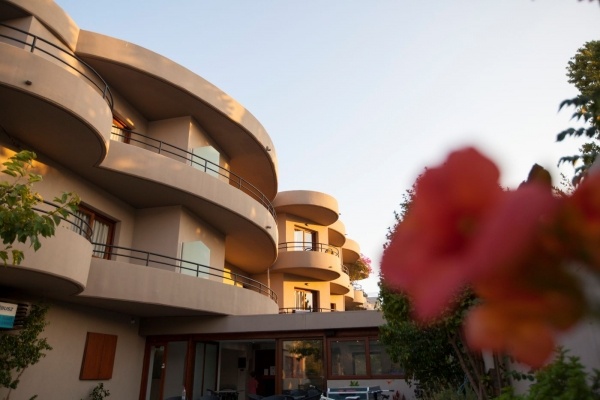 A település viszonylag csendesebb részén, a központtól egy rövid sétára, a homokos tengerparttól mintegy 650 m-re található háromszintes, 21 szobás apartmanház. A közelben kb. 20?800 m mini market, taverna, kávézó található.
