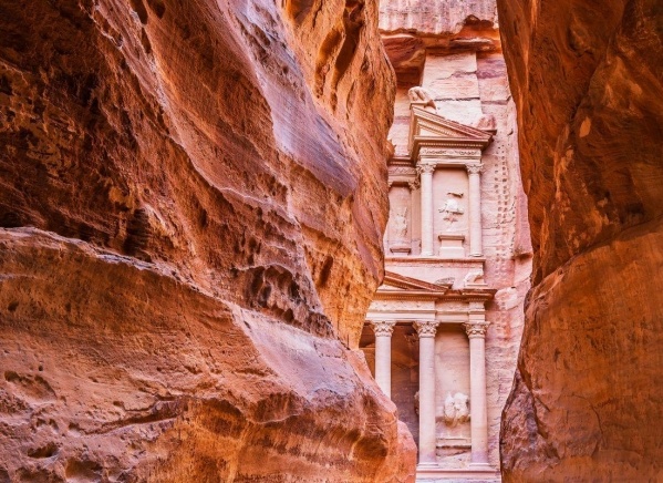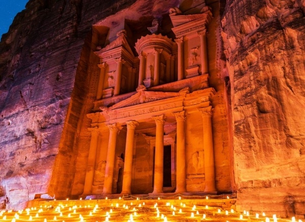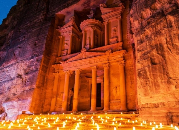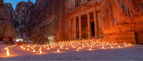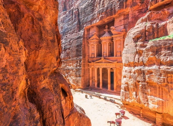Reggeli után a nabateusok ősi városa, a sziklába vájt Petra felé vesszük az irányt. Érkezés után a ,,rejtett város" gyalogos felfedezésére indulunk, az 1 kilométer hosszú, hatalmas sziklákkal szegélyezett, szűk kanyonban. A páratlan színekben játszó homokkő sziklafalak mindenkit ámulatba ejtenek egészen addig, amíg egy keskeny hasadékon keresztül Petra jelképe, a híres ,,Kincstár" látványa elénk nem tárul. Ez a régészeti terület mindenki által ismert látnivalója. Azonban ezen kívül még számtalan lenyűgöző sziklasírt, templomot és amfiteátrumot is találhatunk itt. Másik érdekessége az út végén álló kolostor, ahova 800 lépcső vezet, így megközelítése már jóval nehezebb. Ezután folytatjuk utunkat a helyiek által "Hold völgyének" is nevezett Wadi Rumba.