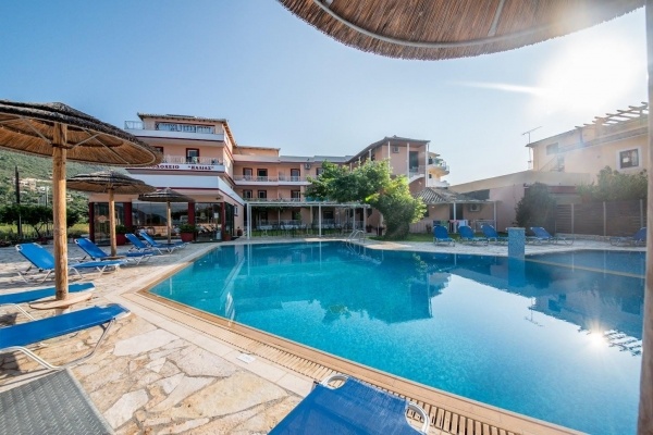 Családi vezetés alatt álló szálloda Vassiliki központja közelében. Számos bolt, bár és taverna egy rövid sétával elérhető. A homokos/kavicsos strand kb. 150 méterre fekszik a szállodától és egy úton át éhető el.