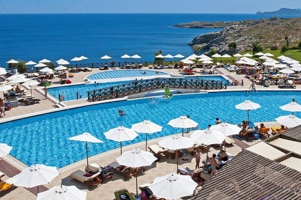 - több medence teraszos elrendezéssel (napágyak és napernyők ingyenesen, törölközők kaució ellenében - csere heti 2x)
