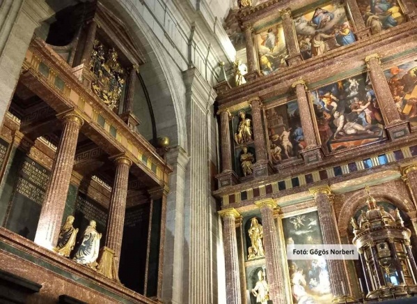 Reggeli és kijelentkezés után poggyászaink bepakolása a buszba. Utazás Európa (s egyben Földünk) legnagyobb reneszánsz épületegyütteséhez, a 940.000 m2 (!) méretű San Lorenzo de El Escorialhoz. Az El Escorial királyi kolostor - bazilika - királyi palota - uralkodói pantheon - birodalmi könyvtár és gyűjtemény - kórház, valamint iskola is egyben. II. Fülöp idején épült, máig is hihetetlen módon, csak 21 év alatt (1563-1584). Bazilikájának 95 méter magas kupolája alatt 48 oltár (!) előtt áldoztak (áldozhatunk) hálával az isteni gondviselésnek. 26 spanyol király, infánsok és főhercegek sírjai hirdetik a spanyol világ múltbéli befolyását, máig örök méltósággal néznek le ránk V. Károly és II. Fülöp szobrai, festményei. Az irdatlan, UNESCO világörökségi épület-óriás bejárása először közösen - majd egyénileg.