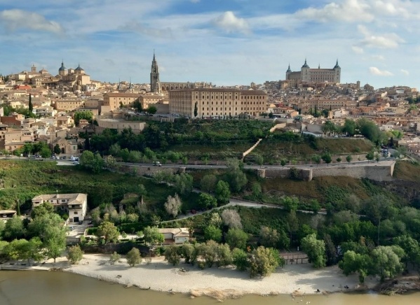 Reggeli után csomagjaink bepakolása a csomagszobába, majd találkozás helyi házigazdánkkal. Séta és feljutás a történelmi városrészbe, a Plaza de Zocodover főtérre. ,,Városnézés-időutazásunkat" a 3. században kezdjük, a római palotából átépített mór erődnél, az El Alcazarnál (kívülről). Sétánk következő állomása a del Tránsito zsinagóga, majd az El Greco Múzeum épülete (kívülről). Látogatás a Mezquita Christo de la Luz mecsetnél, majd az 1200-as évektől épült, gigászi Primada Santa María katedrális bejárása, közösen. El Greco egyik leghíresebb freskójának megtekintése az Iglesia Santo Tome-ban. Ebéd,- és szabadidőnk megkezdése előtt az ókori római eredetű hidak (San Martín és Alcantara) beazonosítása, majd szabadidő, az immár ismerős UNESCO világörökségi Felső-óvárosban. (Toledoi penge, konkvisztádor stílusú tőr, kard és páncélzat fakultatív beszerzési lehetősége.)