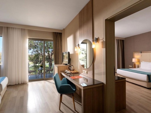 SZOBÁK: 506 szoba o erkély o központi légkondicionálás o hajszárító o telefon felár ellenében o TV o széf o minibár (naponta feltöltve) o wifi o standard szobák: max. 3 fő, kilátás a tájra vagy a tengerre o superior szobák: max. 4+1 fő, kilátás a medencére vagy a tóra o superior garden szobák: max. 4+1 fő, terasz, kilátás a kertre o családi suitetek: max. 4 fő, kilátás a tájra
