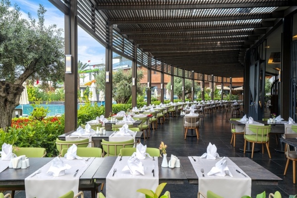 - Ultra All Inclusive: minden étkezés büférendszerben, reggeli korán kelőknek, reggeli későn kelőknek, tematikus estek, napközben snack-ételek, kávé, tea, sütemények, helyi alkoholos és alkoholmentes italok egész nap, tartózkodásonként 1x étkezés a török vagy mediterrán a'la carte-étteremben (előzetes foglalás szükséges). Az All Inclusive szállodák szolgáltatásai bizonyos részletekben szállodánként eltérhetnek.