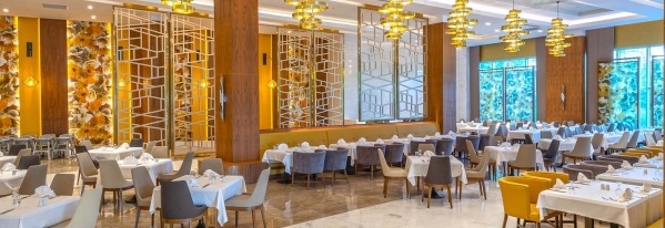 - Ultra All Inclusive: Reggeli, ebéd és vacsora büférendszerben, késői reggeli, diétás ételek, frissen facsart gyümölcslé a reggelinél, napközbeni snackek, gözleme, kávé/tea, sütemények, fagylalt, tematikus estek, helyi és néhány import alkoholos és alkoholmentes italok a nap 24 órájában, naponta vízzel, üdítővel, sörrel, csokoládéval és chipsel feltöltött minibár, 3 a'la carte étterem (mediterrán, török, sushi, a tartózkodás során egy alkalommal, előzetes asztalfoglalással).