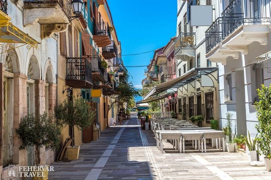 Utazás a Peloponnészoszi-félszigetre. Útközben pihenő a Korinthoszi-csatornánál, melynek tervezésében magyar mérnökök is közreműködtek. Délelőtt látogatás az Epidauroszi színházban (az ókori Görögország legjobb állapotban fennmaradt színháza), kiváló akusztikája elkápráztatja a turistákat. Ezután rövid séta Nafplionban. Görögország egyik leghangulatosabb városa egy hatalmas velencei erőd lábánál fekszik. Délután ismerkedés Mükéné romjaival és Európa egyik legősibb civilizációjával (Átreusz kincsesháza, Oroszlános kapu, fellegvár, múzeum stb.), majd továbbutazás a Peloponnészosz szép tájain keresztül az olümpiai szállodába (1 éj).