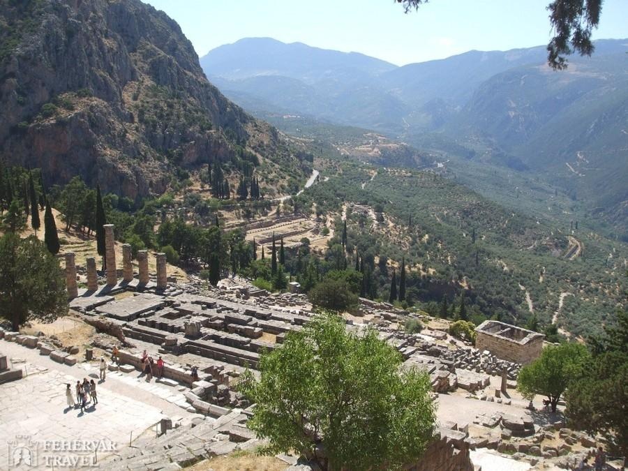 Délelőtt látogatás az ásatási területen, az ókori olimpiai játékok helyszínén, majd Olümpia nagyszerű múzeumának megtekintése következik. A múzeum legértékesebb kincse a világhírű Hermész-szobor.Továbbutazás Patrasz irányába. Átkelés Európa egyik legnagyobb hídján, mely a Peloponnészoszi-félszigetet köti össze Közép-Görögországgal (fotószünet). A Korinthoszi-öböl menti panorámaúton érkezünk Delphoiba a délutáni órákban. Delphoi, az ókori Görögország első számú jóshelye csodálatos környezetben fekszik. A Parnasszosz-hegységben található szentélyegyüttes az ókori emberek képzeletében a világ közepét jelentette. Az ásatási terület megtekintése után a szállodai szobák elfoglalása Delphoi környékén (1 éj).