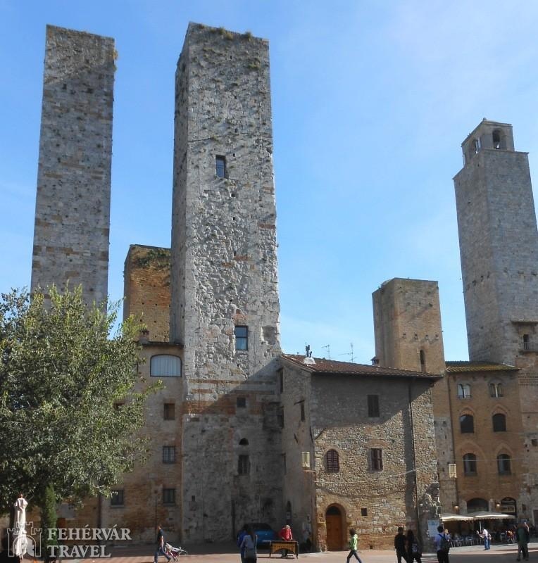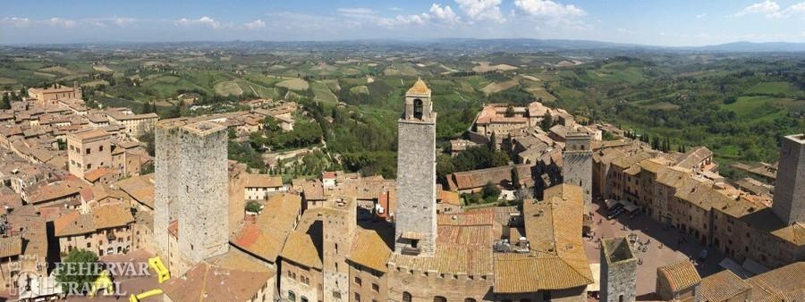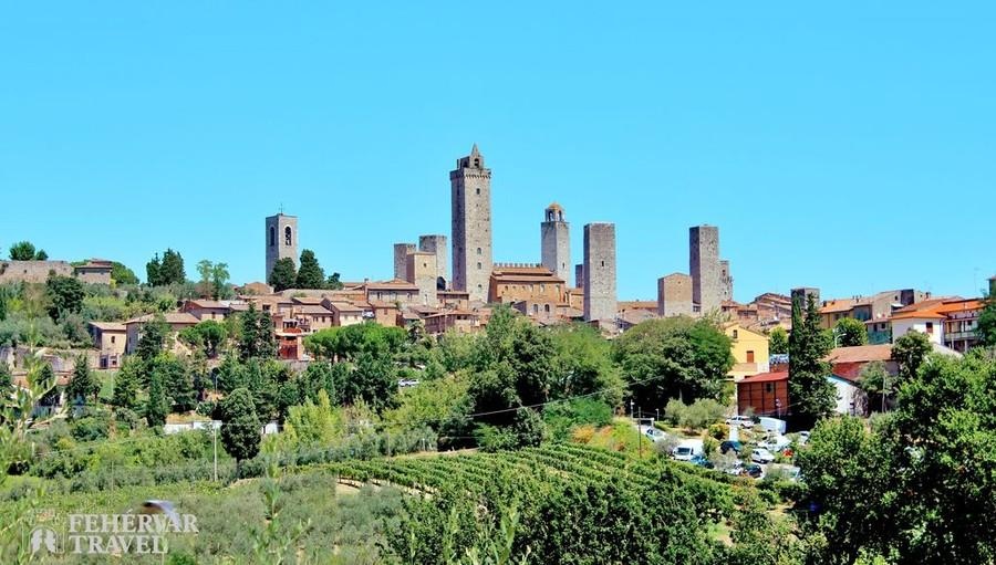 Utazás észak felé. A nap során Toszkána két középkorból itt felejtett kisvárosát nézzük meg:Siena Olaszország legegységesebb hangulatú középkori gótikus városa, ahol szinte minden épület műemlék. Ezek közül kiemelkedik a csodálatos katedrális (tele műkincsekkel) és a világhírű gótikus városháza égbeszökő tornyával a főtéren, mely Olaszország egyik legszebb középkori tere.Délután továbbutazás a közeli San Gimignanóba, Toszkána másik gyöngyszemébe. A falakkal körülvett óvárost középkori Manhattannek is szokták nevezni a XIII. században épült tornyos házai miatt. Séta a városban, látogatás a katedrálisban (szép középkori freskók), majd lehetőség felmenni a legmagasabb torony tetejére (panoráma a sikátorok világára és a hangulatos toszkán tájra).Szállás Firenze környékén (2 éj).