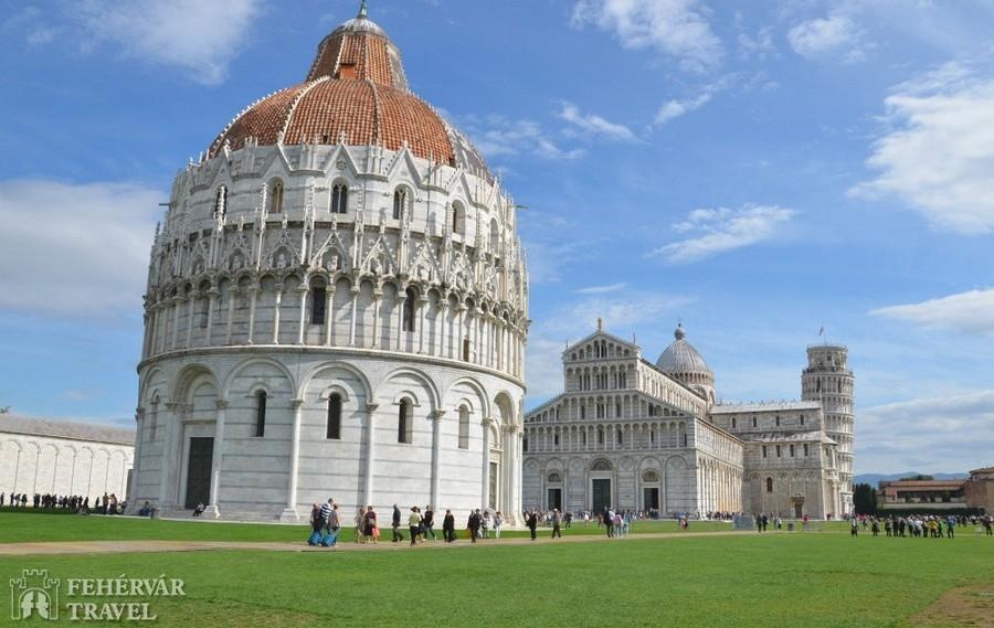 Délelőtt rövid látogatás Pisában, mely valaha Itália egyik legjelentősebb tengeri hatalma volt. A Csodák tere Olaszország egyik legszebb tere, itt található a román stílus három lebilincselően szép alkotása: a keresztelőkápolna, a székesegyház és a híres pisai ferde torony (a székesegyház harangtornya). (Figyelem: azon utasainknak, akik szeretnének felmenni a ferde torony tetejére, próbálunk majd lehetőséget biztosítani, de ezt 100%-ig garantálni nem tudjuk az utóbbi évek megnövekedett turistaforgalma miatt. Az elmúlt 5 évben egyszer fordult elő (kb. 60 csoportból), hogy a felmenetel nem valósult meg.)A késő délelőtti órákban továbbutazás Firenzébe. A nap nagyobbik részét a reneszánsz művészetek „fővárosában” töltjük. A közös séta során látjuk a város fő nevezetességeit, melyek közül a legjelentősebbek: a híres középkori híd (Ponte Vecchio), a főtér a pompás középkori városházával (Palazzo Vecchio), a monumentális székesegyház gyönyörű harangtornyával és a keresztelőkápolnával, a Santa Croce-templom stb. A közös program után szabadidő, illetve idegenvezetőnkkel lehetőség további nevezetességek megtekintésére.