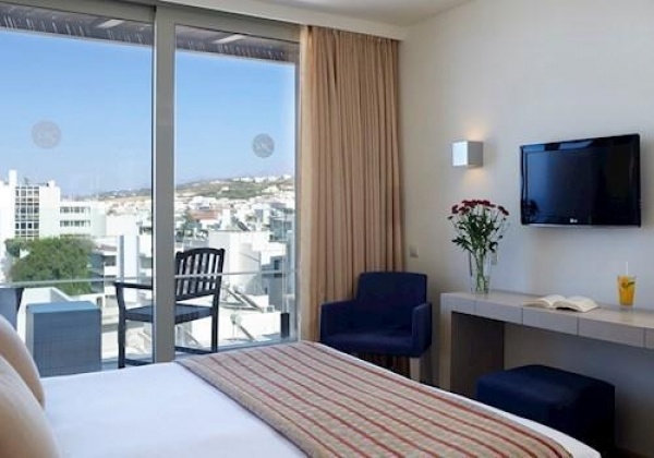 A 2014-ben felújított szálloda 5 emeleten 94 modern, stílusosan berendezett, kényelmes két ágyas pótágyazható, szobákkal várja a vendégeit. A szobák nagy, padlótól a mennyezetig érő ablakain keresztül a vendégeknek gyönyörű kilátásban lehet részük a tengerre vagy Rethymno figyelemre méltó történelmi központjának festői városképére. A szobák mindegyike rendelkezik erkéllyel, légkondicionálóval, telefonnal, televízióval, rádióval, WiFivel és mini hűtőszekrénnyel. Minden fürdőszobában ingyenes, kiváló minőségű fürdőkozmetikumok, törülközők és hajszárítók állnak rendelkezésre.