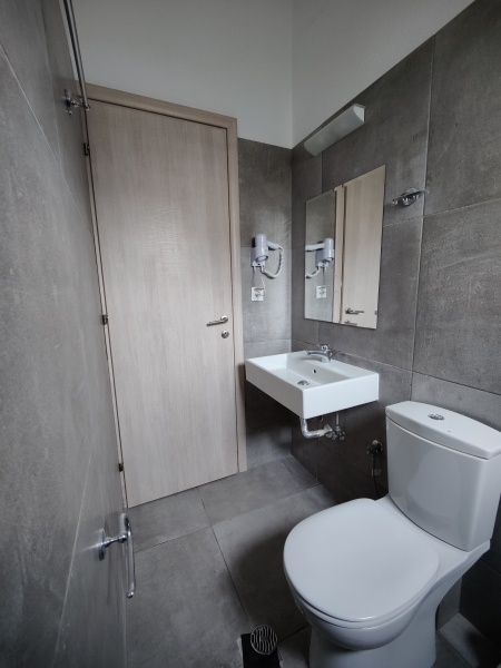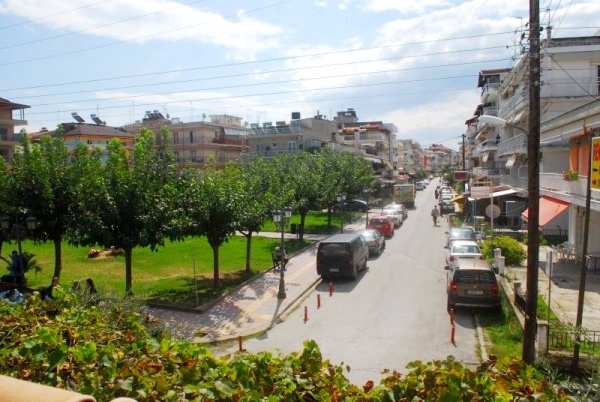 A kiváló elhelyezkedésű apartmanház Paralia központi részén, a tengerparttól kb. 300 méterre található.