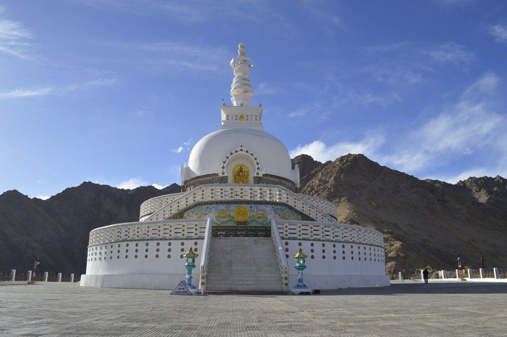 | 4. nap: Leh és környéke | A mai napon Leh és környékének látnivalóit, legfontosabb buddhista kolostorait fedezzük fel. Leh városában található a Sankar kolostor, a Gelukpa vagy sárga kalapos rend szerzeteseinek otthona, fő látványossága az ezer fejű és ezer kezű Avalokiteshvara szobor. Leh környékén ellátogatunk a hegyoldalba épült Spituk és Phyang kolostorokba, láthatjuk a korábbi királyi palotát, a Leh palotát, vagy Lachen Palkart illetve a Namgyal Tsemo kolostort, ahol egy 3-emelet magas arany Maitreya Buddha szobrot csodálhatunk meg. Utolsó állomásunk a buddhizmus 2500 évének emléket állító Shanti sztúpa.