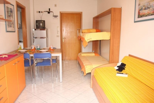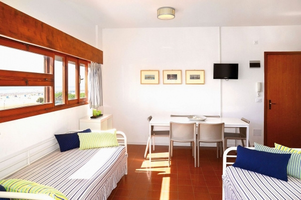 Stúdiók: A3 (2-3 Fő részére, nappali kétszemélyes kinyitható kanapéval és 1 kinyitható egyszemélyes kanapéval, főzősarok, fürdőszoba, terasz és légkondicionálás.