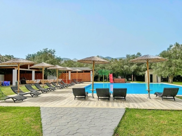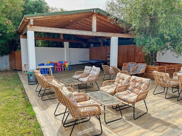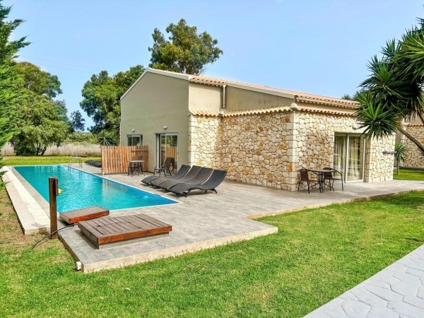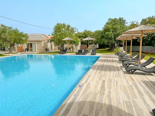 A családias hangulatú, főépületből és több bungalóból álló szálloda a sziget északi részén, Acharavi közelében fekszik, egy olajfákkal teli kertben. A közelben található Antinioti-tó, valamint az kb. 300 méterre Korfu egyik legszebb homokos strandja. Ingyenes buszjárat Acharaviba (kb. heti 3x). Minden korosztály, de különösen a gyermekes családok számára ajánljuk.