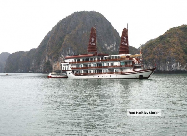 Reggeli után utazás autóbusszal az álomszép Halong-öbölbe. Érkezés délben, majd beszállás a tradicionális "sárkányhajóba", ahol elfoglaljuk a kabinjainkat. A kapitány üdvözlése után ebéd, majd hajónk kifut az öbölből és behajózik az ezernyi mészkősziget közé. Este szakácsok rögtönzött főzőbemutató keretében avatják be a vendégeket a vietnami konyha rejtelmeibe. A tenger gyümölcseiből készült gazdag vacsora zárja a napot. Szállás a hajón a Halong-öbölben. (1 éj).