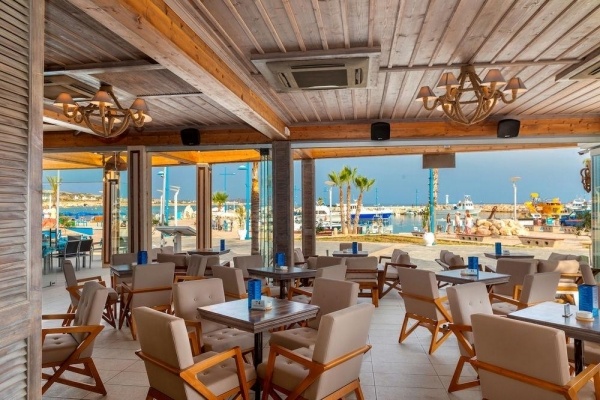 Étkezés: büféreggelivel, félpanzió (büféreggeli és vacsora) vagy teljes panzió (büféreggeli, ebéd és vacsora) is foglalható. Az étterem kínálatában friss tengeri ételek, ciprusi és görög specialitások, valamint nemzetközi fogások is szerepelnek. A vacsoráknál a helyi alapanyagok frissessége és a minőségi kiszolgálás kiemelt szerepet kap. A tengerre néző teraszos étterem különleges hangulatot biztosít a vacsorákhoz.