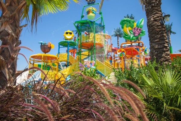 - Felnőtt és gyermek medencék (néhány tengervizes medence), napernyőkkel és napozóágyakkal, 2 felnőtt villa-medence (kizárólag a villavendégek részére), belső medence, felnőtt aquapark 10 csúszdával, külön gyermek aquapark vízi élmények sokaságával, 6 étterem, számos bár, cukrászda, kávézó, sörkert, széleskörű nappali és esti animációs programok, karaokee, tematikus estek, diszkó, miniklub (4-12 éves korig), mini vidámpark (napi kb. 1 órát üzemel), minidiszkó, fitneszterem, törökfürdő, szauna, asztalitenisz, darts, íjászat, lövészet, zumba, vízitorna, strandröplabda, kosárlabda, minigolf, mini futball, 2 teniszpálya, WIFI a szobákban és a komplexum közös helységeiben.