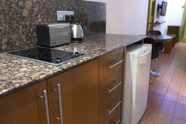 Étkezés: Büfé reggeli. Főzési lehetőség a konyhával felszerelt szobákban (evőeszközök, edények). Felár ellenében félpanzió (reggeli és menüvacsora) foglalható.