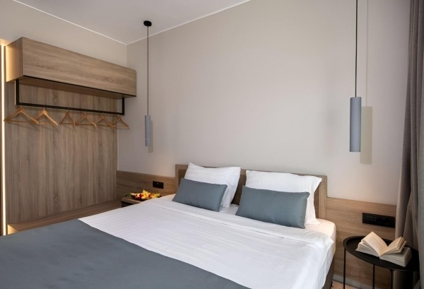 - homokos tengerpart (vízbe lépve kavicsos, fürdőcipő viselete ajánlott) kb. 100 m-re (a szobák elhelyzekedésétől függően akár 200 m is lehet)