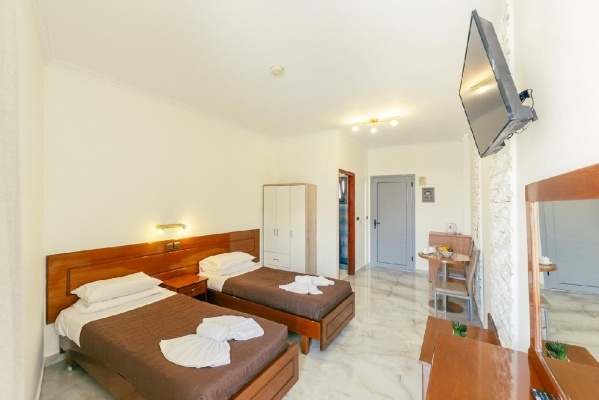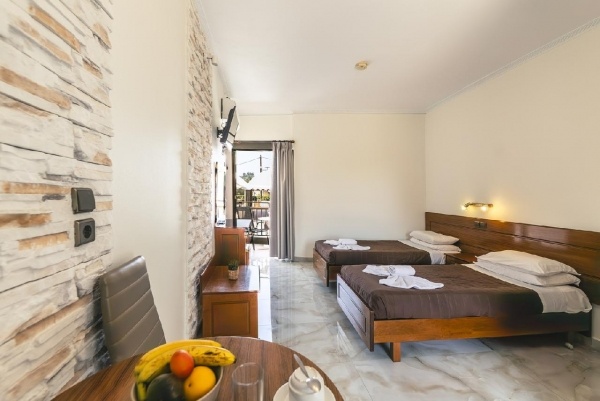 2 ágyas, pótágyazható (kinyitható ágy) szobákban, melyeket korábban stúdióként használtak, ezért konyhasarokkal felszereltek (vízforraló, szendvicssütő), de legfeljebb kávé- és teafőzésre használhatók. A szobák kertre vagy felár ellenében tengerre néznek. Minden szoba légkondicionálható (felár ellenében), TV-vel, telefonnal, balkonnal rendelkezik.
